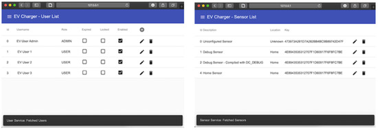 The management unit exposes a web application, developed in Angular, which relies on the services exposed and allows the EV platform managers to monitor, configure and operate the platform. It also provides to the platform users a complementary user interface that, although supporting only a reduced set of the operations available on the native mobile app, allows the users to interact with the platform using browser-only technologies, available in a wider range of devices. Figure 14 displays some screenshots for the management unit web application.