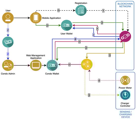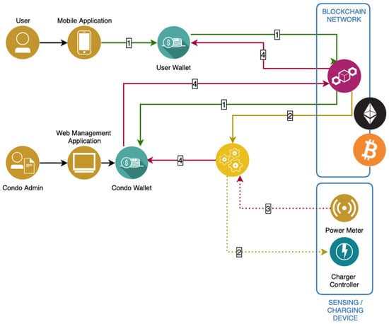 One of the big challenges related with electric vehicle (EV) market penetration is the charging process, where the main problems are related to the lack of proper infrastructure in residential buildings (condominiums) since they are not prepared for this new reality. Condominiums have the problem of shared electricity, which does not meet the EV owner’s requirements. Based on new advances in the Internet of Things (IoT) [], and the associated sensing devices and communication platforms, blockchain and information systems have the potential to create new solutions for these problems. Another facet of this challenge is the problem associated with rental houses and the eventual need for supporting EV charging in these cases.