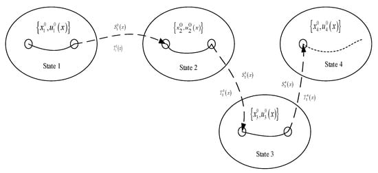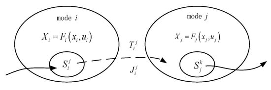 Figure 5 briefly describes the dynamic process of mode transition. In mode i, when the switch signal is triggered, the mode i starts to switch to the mode j, and the state space is transformed into the state space by the switching rule . Where is the cost function when mode i switches to mode j to optimize the switching process. Mode transition control seeks a control vector from the control domain to minimize the cost function.