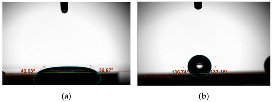 - Cassie, A.; Baxter, S. Wettability of porous surfaces. Trans. Faraday Soc. 1944, 40, 546–551. [Google Scholar] [CrossRef]