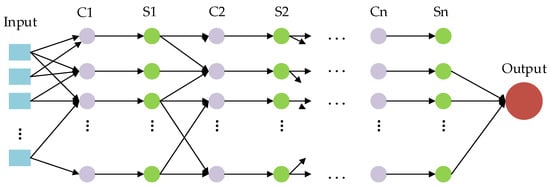 The DCNN is a kind of ANN with deep learning capability whose main characteristics are the local connection and weight sharing of neurons in the same layer []. Multiple feature extraction layers and the fully connected one are typically included in the network. Each feature extraction layer consists of two units, that is a convolutional layer and a subsampling one. The framework of the DCNN is shown in Figure 2. In the DCNN, the neural nodes between two layers are no longer fully connected. Instead, layer spatial correlation is adopted to link the neuron nodes of each layer merely to the ones in the adjacent upper layer. Hence, local connection is completed, and the parameter size of the network is greatly reduced.