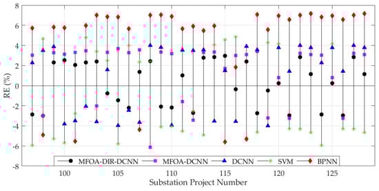 Nowadays, many scholars have published their momentous work to handle the cost forecasting of engineering, but few studies have focused on substation projects. The approaches in regard to engineering cost prediction are primarily separated into two kinds—traditional prediction methods and intelligent algorithms. Traditional forecasting techniques primarily consist of time series [], grey prediction [], regression analysis [] and so on. Reference [] designed a time series prediction model for engineering cost based on bills of quantities and evaluation. The results indicated that this proposed model controlled the error range within 5%. Reference [] put forward an improved grey forecasting method optimized by a time response function to predict main construction cost indicators in power projects, where the constant C was determined through the minimum Euclidean distance of an original series and constraints of simulation values. In reference [], a forecasting technique grounded on multiple structure integral linear regression was established in line with the characteristics of engineering cost composition. Principal component analysis was introduced here to address the multicollinearity. In spite of their mature theories and simple calculations, the defects of these methods, including narrow application scope and unideal forecasting accuracy, cannot be ignored.
