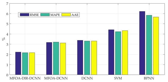 The real powerful computing capability of neural networks has been brought into play since the creation of a DNN with “multi-layer structure and learning ability layer by layer” by Professor Hinton, University of Toronto in Canada in 2006. The DNN has aroused great concern in both academia and industry and has become a hot tool for data analysis in the big data era []. Additionally, this technique has made breakthroughs in the fields of signal recognition, natural language processing, and so on; it has also kept updating all kinds of records with amazing speed in diverse application areas []. In 2012, Krizhevsky et al. [] put forward the concept of depth into traditional a convolutional neural network (CNN) and proposed a deep convolutional neural network (DCNN). The DCNN, as the first approach that successfully trains multi-layer networks, has been widely used owing to self-study of data characteristics []. Thereinto, the CNN model realizes the optimization of a neural network structure by self-convolution for local features, weight sharing, subsampling and multiple perception layers. Additionally, the CNN technique not only reduces the number of neurons and weights but also uses pooling operation to make input features invariable in displacement, scaling and distortion, which contributes to the improvement of accuracy and robustness for network training []. The DCNN has been employed in the area of prediction [,,,]. For instance, an original hybrid model on the basis of the DCNN was built to forecast the deterministic photovoltaic power in reference [], where the DCNN was applied to nonlinear feature and invariant structure extraction presented in every frequency. The computing results indicate that the novel models can improve forecasting precision with respect to seasons along with various prediction horizons in contrast with conventional forecasting approaches. In reference [], the DCNN integrated with a concretely ordered feature came up for the intraday direction forecasting of Borsa Istanbul 100 stocks. The results displayed that this established classifier is superior to logistic regression and the CNN in use of randomly ordered features. Thus, for the purpose of training time and model complexity reduction, feature selection models can be employed.