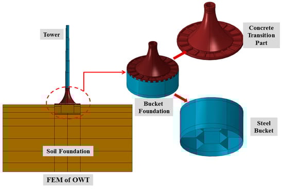 The finite element model (FEM) of OWT supported by bucket foundation.
