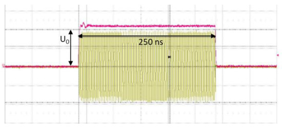 Calibration impulse used: fsin = 500 MHz sinusoidal signal with Ton = 250 ns duration and defined amplitude U0.