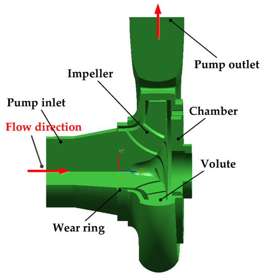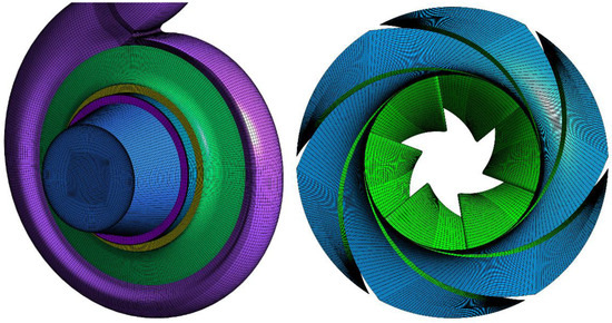 More details about the geometry parameters and the numerical method of the pump are given in previous research [23,24]. The flow in the centrifugal pump is predicted by the numerical simulation with the commercial ANSYS-CFX 14.5 code.