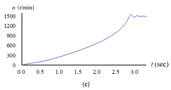 (a) Current curve of motor direct starting; (b) Current root mean square (RMS) of motor with direct starting; (c) Speed curve of motor with direct starting.