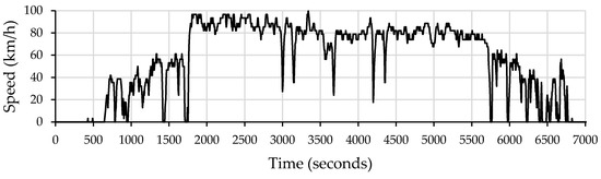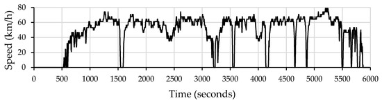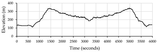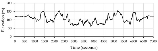 The elevation of the route is shown in Figure 5, and the driving cycle of the tests can be seen in Figure 6.
