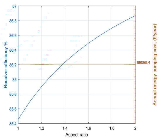 Effects of aspect ratio on receiver efficiency and annual energy cost.
