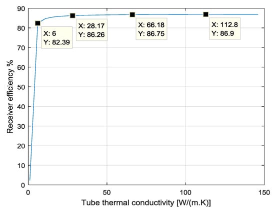Influence of tube thermal conductivity on receiver thermal efficiency.