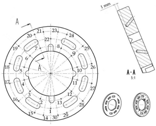 Position of the thermocouples in the valve plate.