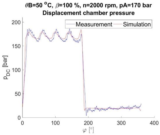 Prediction vs. measurement; displacement chamber pressure.