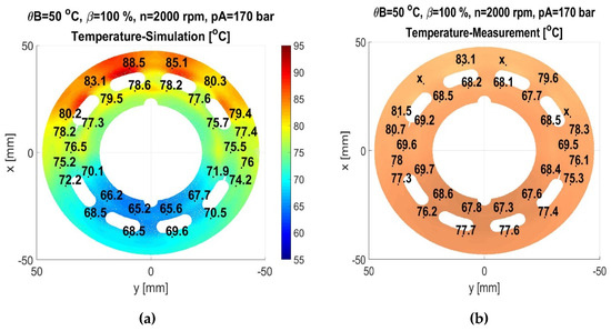 (a) Simulated temperature of valve plate; (b) measured temperature of valve plate.