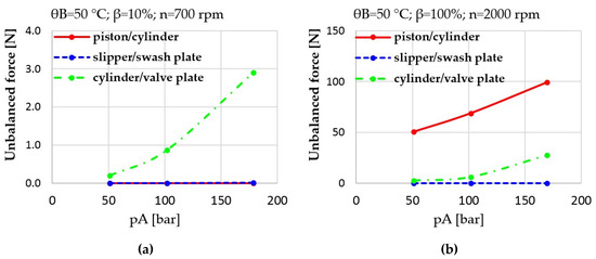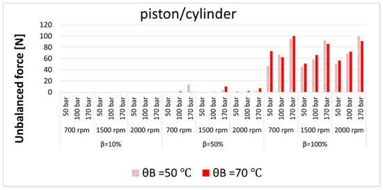 Unbalanced forces in the piston/cylinder interfaces at different operating conditions.