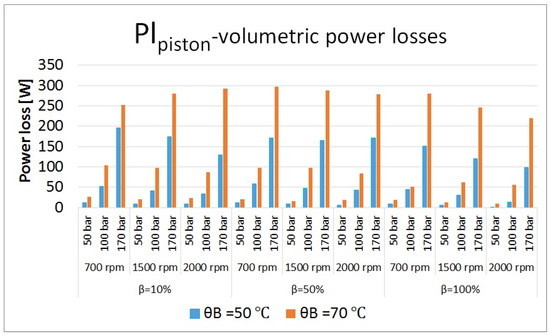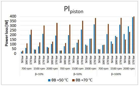 Volumetric power losses in piston/cylinder bore interfaces at different operating conditions.