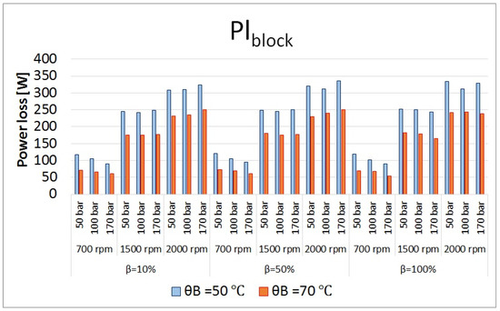 Total power losses in cylinder block/valve plate interface at different operating conditions.