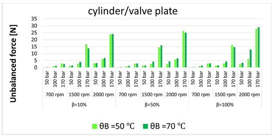 Unbalanced forces in the cylinder/valve plate interfaces at different operating conditions.