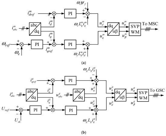 Control diagram of back-to-back converter (a) motor-side; (b) grid-side.
