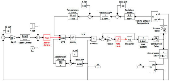 The MGT model of this paper comes from Reference [16], and we have improved the control model to enhance power regulation capability and reduce the risk of rapid regulation on the health of MGT. This section mainly introduces the improved parts: The integrated speed and power control and the fuel control system. Other parts of the model can be found in Reference [16], and, thus, are not covered here.
