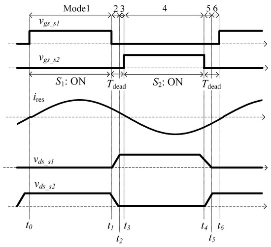 Mode 6 [t5-t6]: This mode is still dead-time, and the parasitic diode of S1 conducts. Discharge of Cds1 should be completed during modes 5 and 6 for ZVS of S1.
