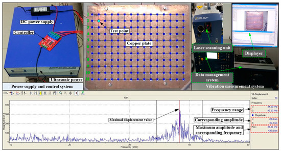 Figure 11 illustrates the vibration characteristics on the copper plate when different ultrasonic transducers were opened. As illustrated in