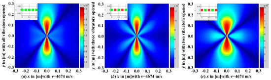 Figure 8b,c indicates that the ultrasonic focusing field intensity decreased with a decrease in the number of opened ultrasonic transducers. As illustrated in