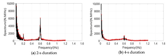 Figure 16 shows the torque power spectra of the rotor under 2-s and 4-s duration yawing process. The blade passing frequency of the NREL 5-MW turbine is about 0.2017 Hz (1P fluctuation), and is clearly the main frequency of the two yawing processes. Both are 0.6 Hz (which is approximately a 3P rotor fluctuation), which is similar to results presented by Castellani [