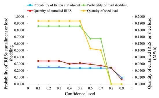Since the net load is a variable that follows a certain distribution and its exact value cannot be known in advance, the net load is simulated using simulation. Different results can be achieved by the same dispatch scheme under different simulated scenarios. As mentioned previously, the shortage of upward or downward ramping capability may result in the compulsory load shedding or the curtailment of IRESs, respectively. Therefore, the lack of operational flexibility of a power system can be measured by the amount of the shed load or curtailed power output from IRESs in a given time duration.