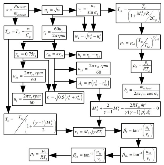 Figure 5 shows an overview of the equations used for calculating the dimensions of the turbine, respectively, where the process for calculating values is continuously correlated using the MATLAB program.