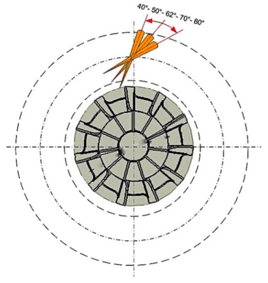 The variable vane angled; 40°, 50°, 62°, 80°, and 85°.