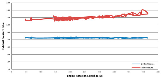 The rotation speed of the engine and runtime engine defines the pressure of the exhaust gases. During the initial stage, the rotation speed of the pressure was low. It will increase as the speed increases, as a result of the exhaust gas flow rate. The outlet pressure was lower than the inlet pressure.