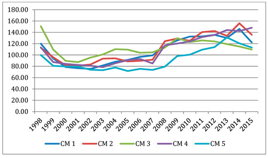 The above tendencies were reflected in the constant increase of the unit cost, which raised from 22% (CM3) to 65% (CM4) during the 18 years period of analysis of constant prices in 1998 (Figure 2 and Table 6).