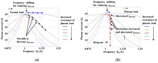 Description diagram of plasma drop-out: (a) frequency control method in resistive load; (b) frequency control method in plasma load.