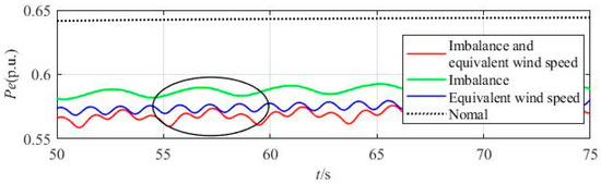 Combined with the influence of blade mass imbalance in Section 2, the influence of electromagnetic power with the blade mass imbalance under equivalent wind speed is obtained. It can be expressed as: