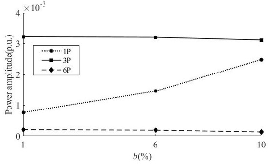 The corresponding amplitudes at 1P, 3P, and 6P under different fault levels are listed, as shown in Table 3, and drawn as a line graph, as shown in Figure 14. It can be seen that as the degree of imbalance increases, the amplitude at 1P increases significantly, while the amplitude at 3P and 6P changes little, consistent with the foregoing conclusions.