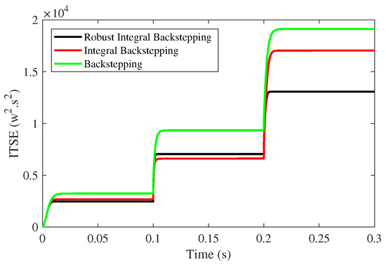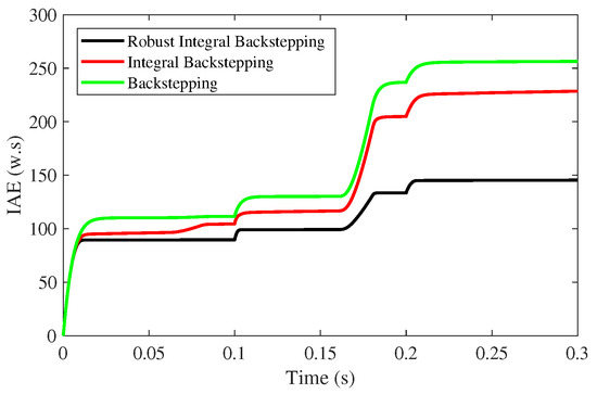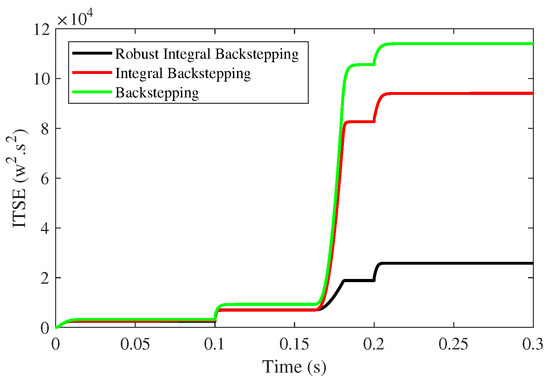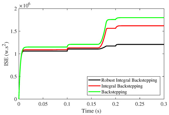From Figure 20, it can be observed that backstepping controller deviates about 6 V and integral backstepping controller 15 V from the , while there is no deviation in the proposed controller. Besides, a maximum steady-state error is observed in backstepping and integral backstepping.