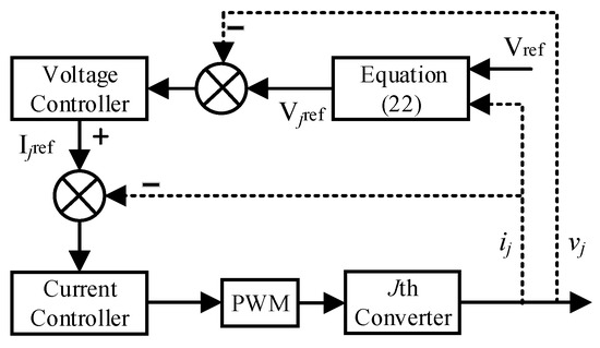 The control block diagram of the proposed strategy is shown in Figure 5. As shown, the droop equation provides the reference value for the output voltage of the jth converter and serves as the input for the dual-loop control.