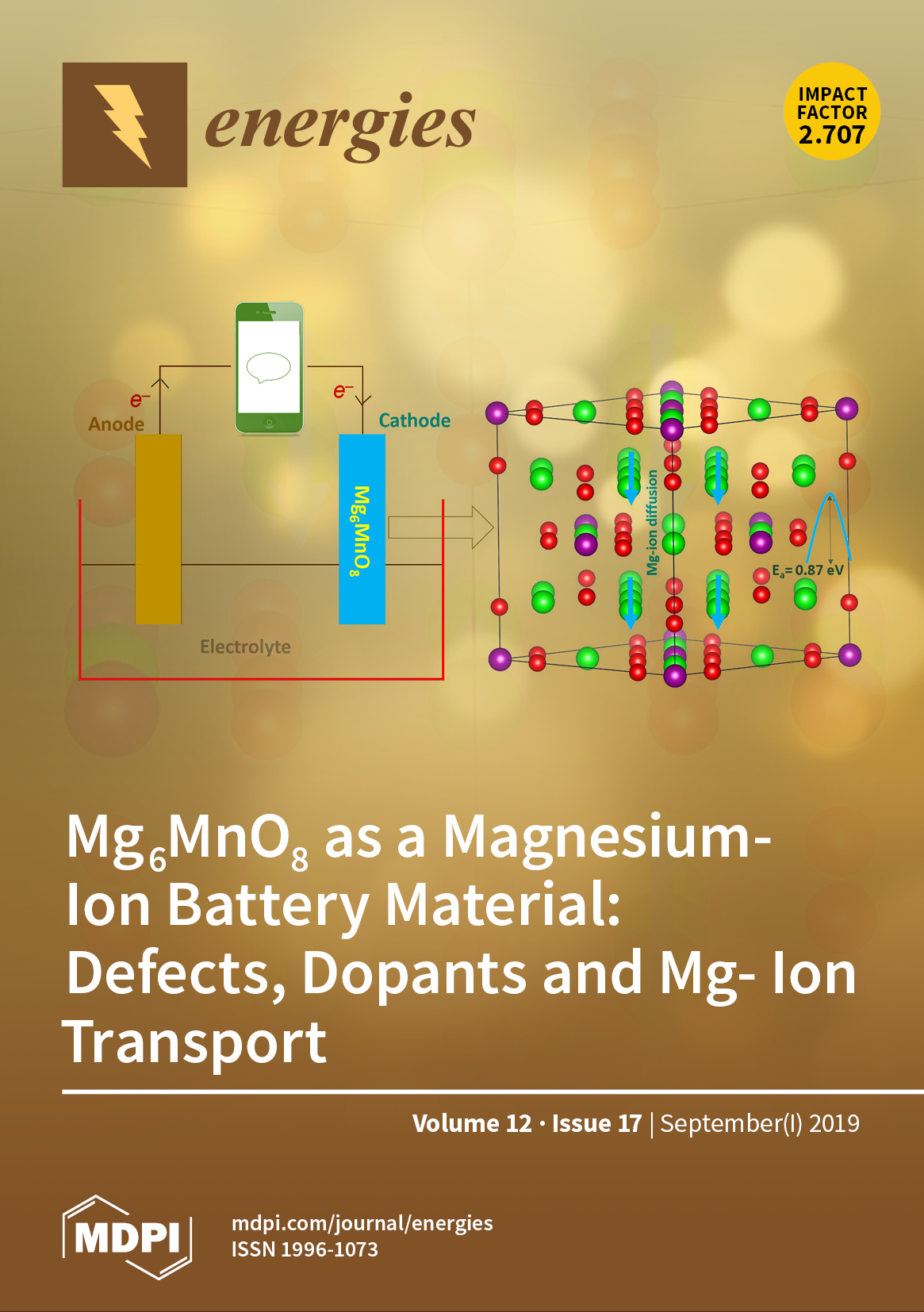 Cover Story: Rapid advancement of energy devices necessitates the development of new battery technologies. Considerable effort is being devoted to the development of Mg–ion batteries owing to the high abundance of Mg and its high melting point. Development of new electrode materials which are cheap, nontoxic, and with high abundance is a challenging task. Computational modeling techniques are employed to show that the Mg–ion diffusion in Mg6MnO8 is moderate. Furthermore, favorable dopants are identified to increase the Mg content in this material to increase the capacity. View this paper. - Issues are regarded as officially published after their release is announced to the table of contents alert mailing list .
