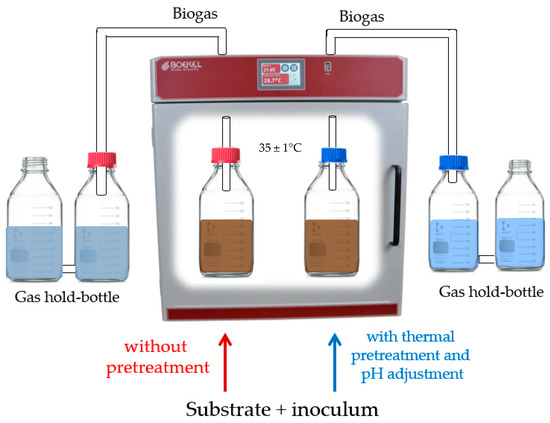 Parameters of the batch digestion tests with pH adjustment and thermal pretreatment.