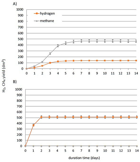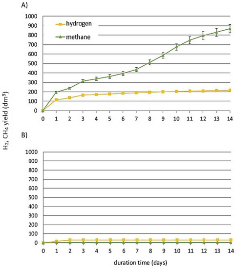 Biogas yield was monitored on a daily basis by the water displacement method, which is described elsewhere in the literature [48]. The content of O2, CO2, CH4, H2 and H2S was measured by portable gas analyzer (Madur, GA-21 plus). In this study, the hydrogen yield was evaluated mainly on the VS basis in order to render our results comparable to other studies.