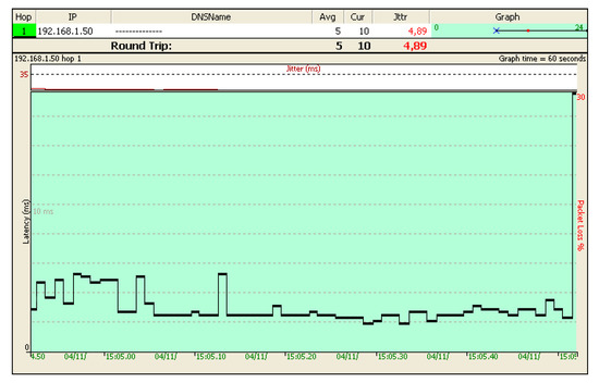 Figure 7 shows the round-trip latency in the wireless network. The round-trip latency statistical value is 5 ms with a typical deviation of 1 ms.