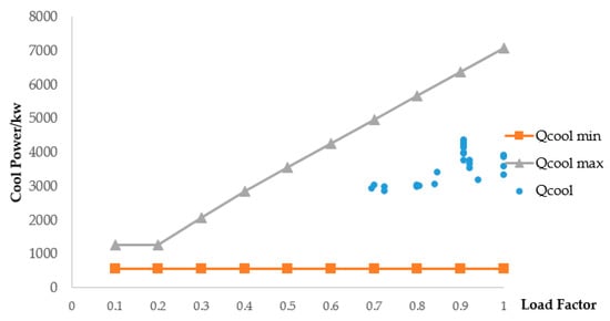 - When the external power grid input is 0 KW, calculate the lowest lower limit of the cold, heat and electricity output power of each decoupling system;