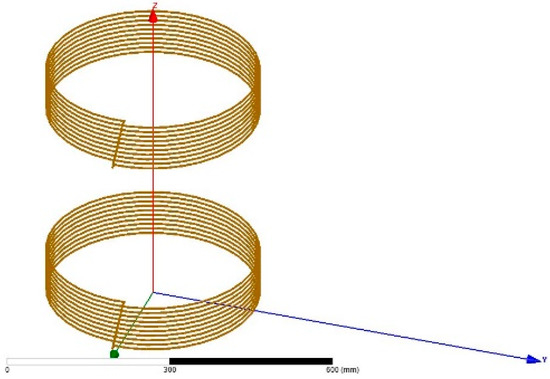 A simulation model of wireless power transfer system was established according to the experimental platform as shown in Figure 9.