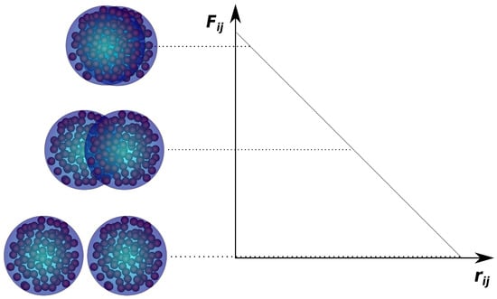 Note that, in the original formulation of DPD, the force is only repulsive. For condensed matter, this seems to be okay. As mentioned above, the “attractive” forces between different liquid–solid or liquid–liquid particles can be emulated by considering different values of a. For free-surfaces, liquid–gas interfaces (e.g., bubbly flows), variations of DPD can be used. One such popular method is the Many-Body DPD (MDPD) which includes an attractive component in its conservative force []. Furthermore, extensions and variations of the base model can allow for heat transfer across the system [,], something not possible with the initial formulation.