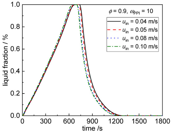 | Inlet velocity (m/s) | charging time (s) | discharging time (s) | total time (s) |