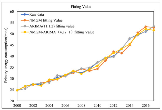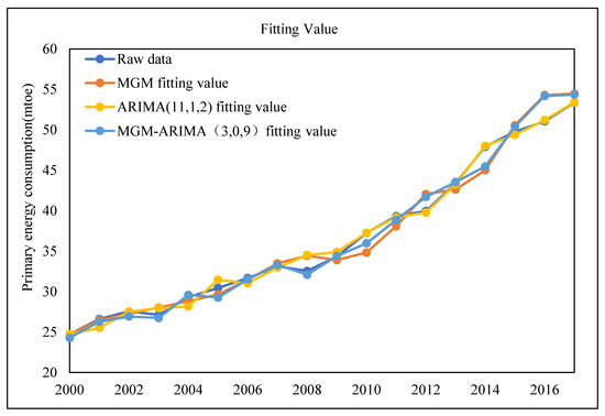 (1) In this study, five methods (MGM, NMGM, ARIMA, MGM-ARIMA, and NMGM-ARIMA) are used to fit the primary energy consumption of East Africa from 2000 to 2017. On the one hand, the average relative errors of the five models are 2.8216%, 2.9697%, 1.5013%, 2.0969%, and 1.4654%, respectively. The average relative errors of the five models are all less than 3%. This shows that the five models are suitable for prediction and can produce reliable prediction information. On the other hand, compared with MGM and NMGM models, the average relative errors of models after ARIMA correction decreased from 2.8216%, 2.9697% to 2.0969%, 1.4624%, which showed the advantages of the combined model respectively.