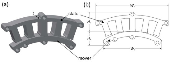 Figure 1a); and, Type 3—based on the combination of the Type1 and Type 2, where the air-gap surface is increased, but the acting force is still produced by the y-component of the normal component of the magnetic field density in the air-gap (