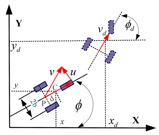The dynamic equation of the differentially driven WMR in the Lagrange form [21,22,23,24] is: