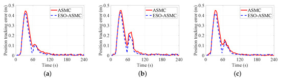 Position tracking errors. (a) Group A. (b) Group B. (c) Group C.