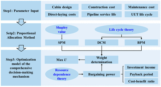 In summary, the process of the proposed comprehensive decision-making mechanism for UUT construction cost allocation is shown in Figure 2. Based on the cost allocation mechanism, the economic benefits evaluation of UUT-laying power cables could also be obtained.